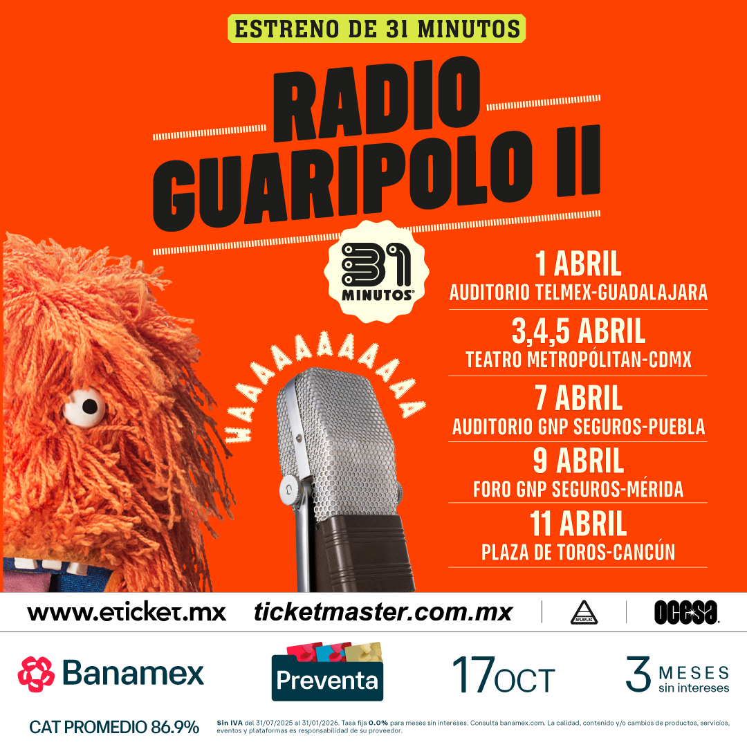 CDMX, 25-Mar-2026 – El universo de 31 Minutos vuelve a los escenarios mexicanos con una propuesta que promete combinar música, humor y nostalgia. Se trata de “Radio Guaripolo II”, el espectáculo en vivo que llegará al Teatro Metropólitan los próximos 3, 4 y 5 de abril de 2026.