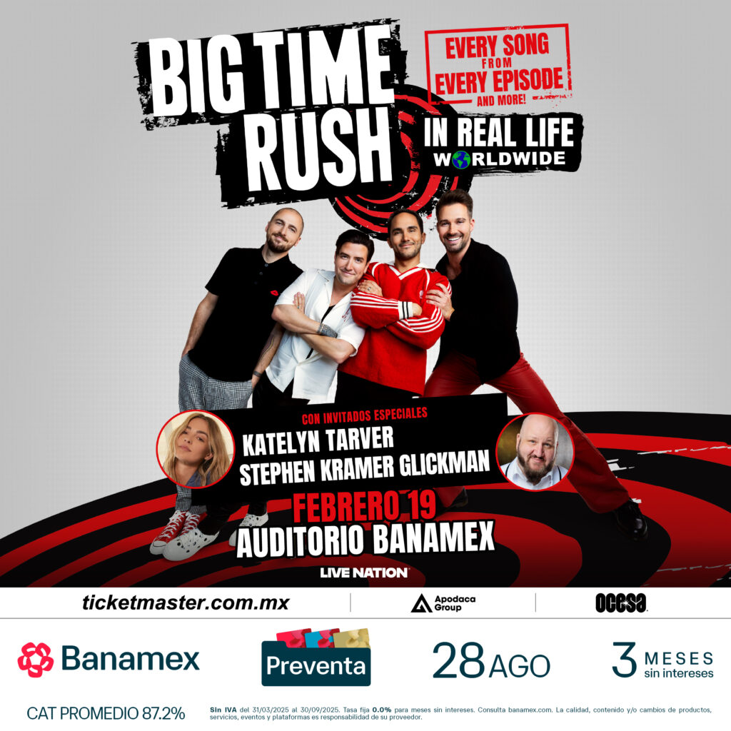Con temas como Boyfriend, Worldwide y Windows Down, además de sus recientes producciones, Big Time Rush promete un show lleno de energía, baile y la vibra juvenil que los ha caracterizado desde sus inicios. Sin duda, Monterrey vivirá una noche inolvidable en febrero de 2026.