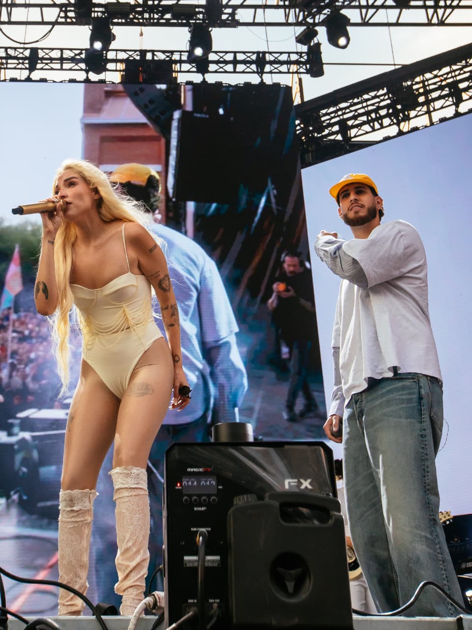 El cierre llegó con “Me lo merezco”, en un momento donde la artista, visiblemente emocionada, incluso se tomó el tiempo para disculparse por los fallos de sonido.