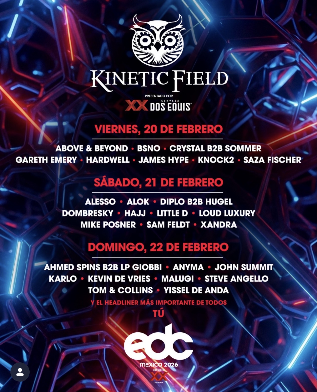 Con su imponente producción, pantallas monumentales y narrativa visual característica, Kinetic Field reafirma su papel como el escenario insignia del festival. Más que una tarima, es una experiencia sensorial que cada año redefine el estándar de los eventos electrónicos en México.