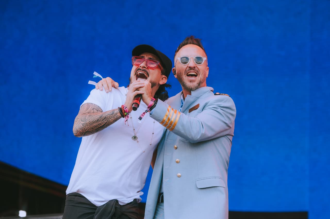Cuando parecía que todo seguiría en mood rockero, el show dio un giro inesperado. Apareció La Sonora Dinamita junto a Ricardo Pérez, y el escenario se convirtió en una fiesta tropical improvisada.