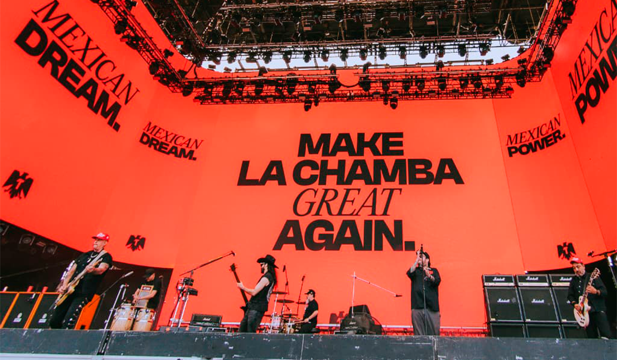 “Frijolero” llegó acompañado de visuales con mensaje directo —“aquí hay jale, paisanos”—, tocando fibras por la realidad migratoria. Y después, “Gimme tha Power” se transformó en un coro masivo con un grito que se sintió hasta atrás: